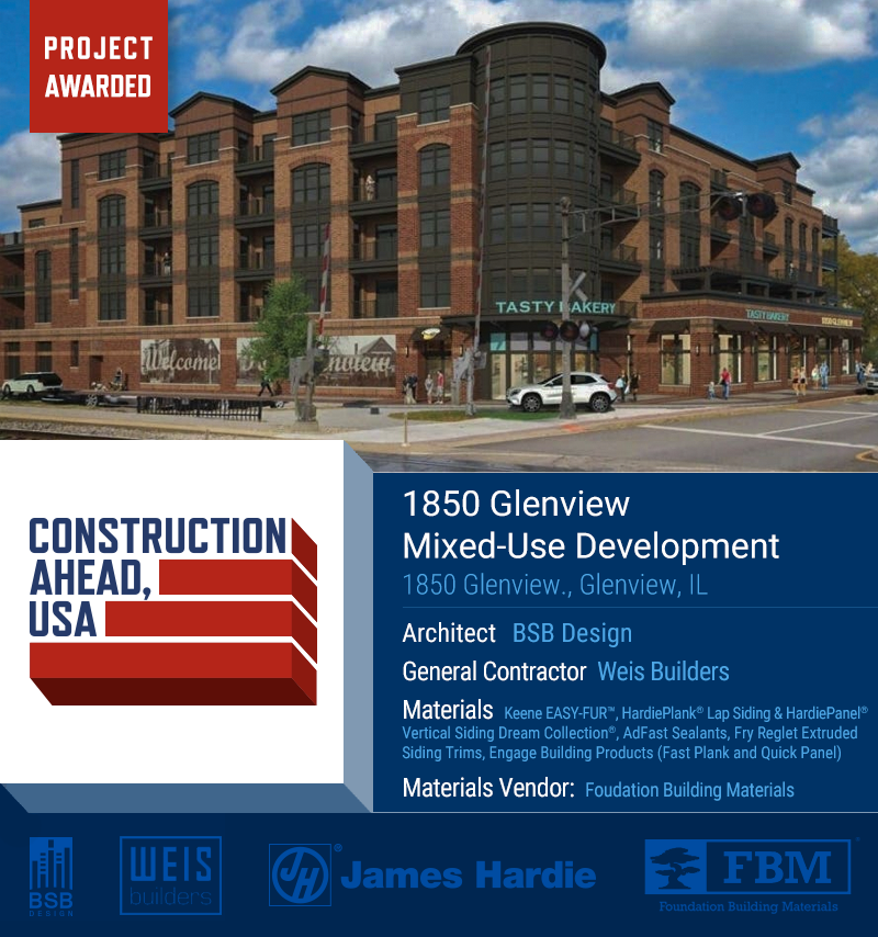 Construction Ahead, USA has been awarded the contract for 1850 Glenview Road, a new 62-unit luxury mixed-use development set to anchor the heart of Downtown Glenview. With 7,655 SF of retail space on the street level and residential units above, this project plays a key role in the Village’s revitalization strategy.